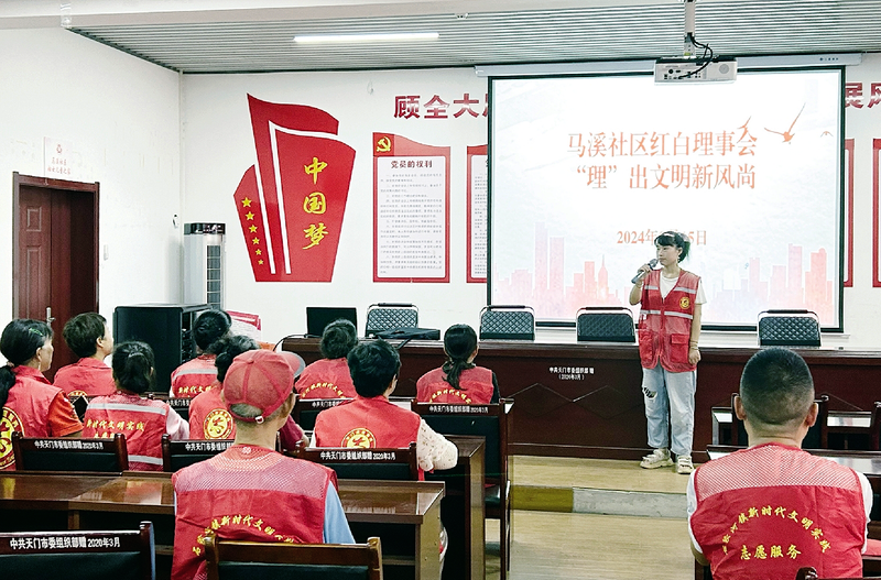 本报讯(融媒体记者鄢紫通讯员蒋思文)“我向大家倡议,要树立婚丧嫁娶的文明新风尚,积极践行文明、健康、科学的生活方式……”近日,石家河镇马溪社区举办“红白理事会‘理’出文明新风尚”宣讲活动 (如图),活动现场,马溪社区妇女主任向社区居民倡议移风易俗。