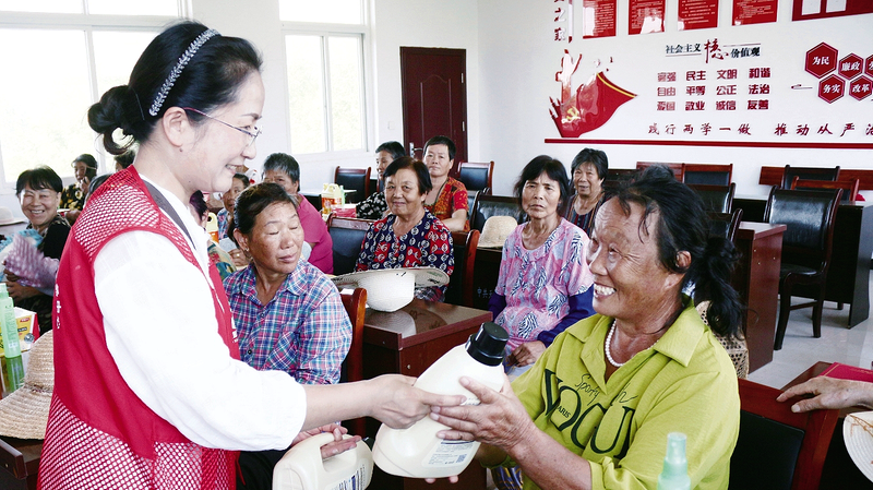近日,益加社工联合小板镇姚胡村开展志愿者表扬会暨积分兑换活动,对志愿者们去年以来的志愿服务活动给予肯定和表扬。活动现场,志愿者们根据自己的积分兑换了所需物品。(融媒体记者谢红艳通讯员夏雨婷摄)