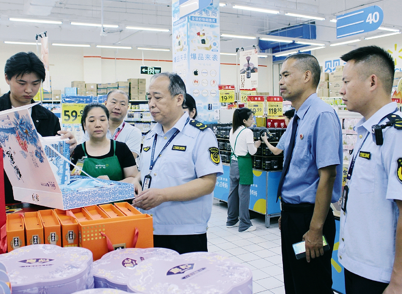 9月13日,市市场监管局工作人员在市检察院相关人员的监督下开展月饼市场执法检查。为遏制月饼价格虚高和过度包装现象,连日来,市市场监管局组织开展中秋节月饼市场价格和过度包装专项整治行动,杜绝过度包装带来的资源浪费与不良消费导向。(融媒体记者王帅通讯员刘进摄)
