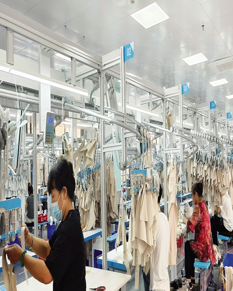 近日,在白马服装原创电商基地天门悦姿服饰有限公司,工人在新上线的吊装生产线上赶制外贸订单。该公司是一家服装跨境电商供应链企业,生产的服装主要销往美国、加拿大、墨西哥等国家。(融媒体记者杨蜜摄)