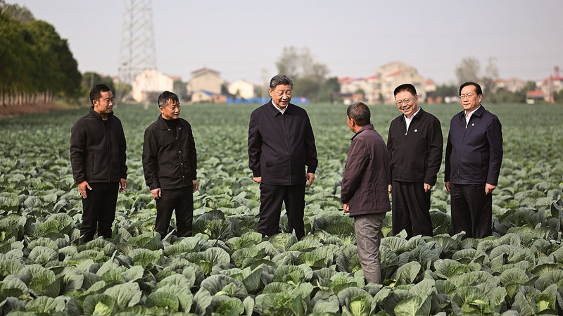 5日上午,习近平前往咸宁市嘉鱼县,首先到潘家湾镇十里蔬菜长廊考察。深秋时节,这里仍然满目青翠、生机勃勃。习近平走进田间,察看蔬菜长势,详细询问蔬菜品种、种植技术、销售等情况。他强调,农村天地广阔,农业大有可为。发展现代农业,建设农业强国,必须依靠科技进步,让科技为农业现代化插上腾飞的翅膀。他勉励当地干部群众走科技之路、质量之路、品牌之路,把蔬菜种植这个富民产业进一步做好,让更多群众增收致富。