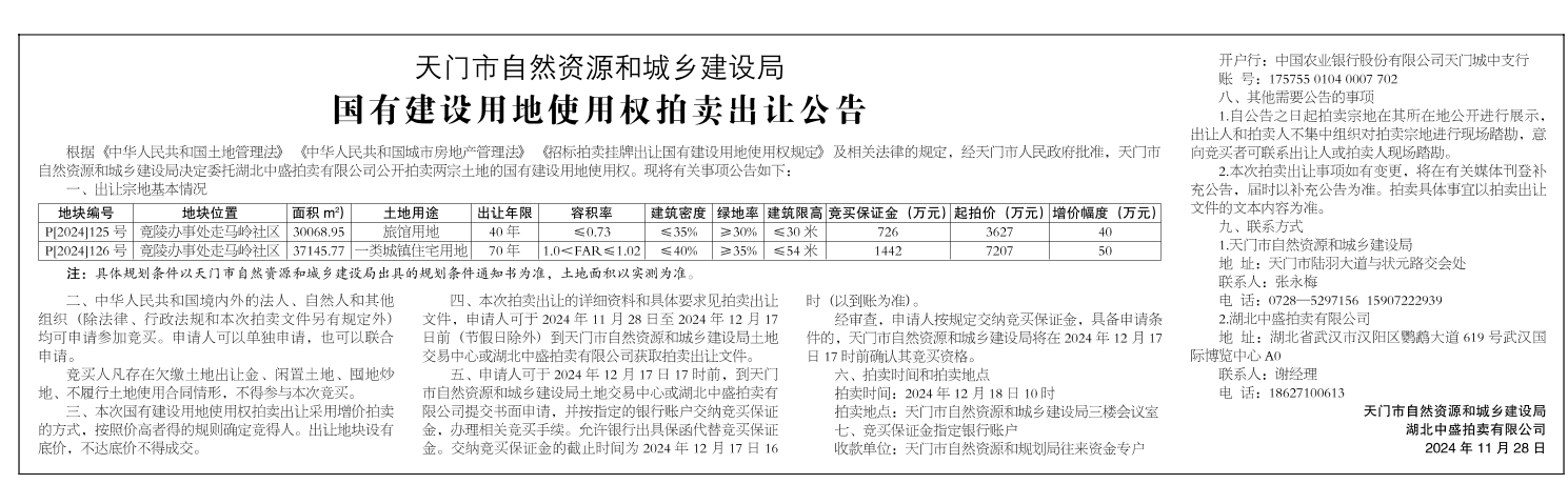 国有建设用地使用权拍卖出让公告