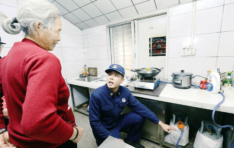 12月3日,市消防救援大队、竟陵街道永丰社区工作人员来到社区独居老人家中,开展火灾隐患排查,安装烟雾报警器,并送去火灾逃生自救设施。(融媒体记者谢红艳通讯员李俊玲摄)