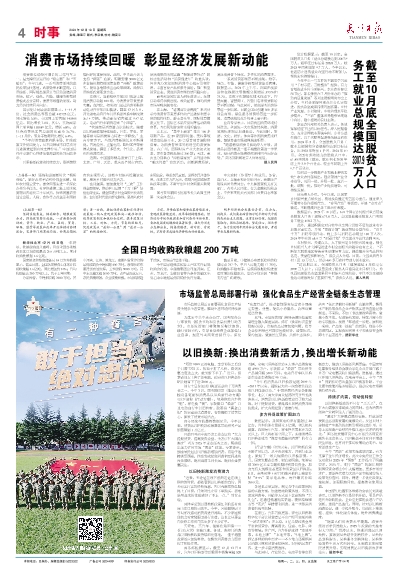 截至10月底全国脱贫人口务工就业总规模达3307.9万人