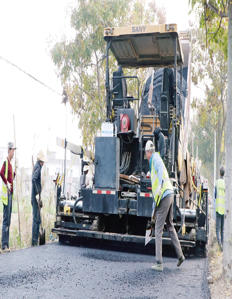 近日,在黄潭镇鲁店村,施工人员对长约 2.5公里的致富路进行刷黑改造。至此,该镇农文旅循环圈25公里道路实现全线刷黑,道路交通条件得到进一步改善。 (融媒体记者杨蜜 摄)