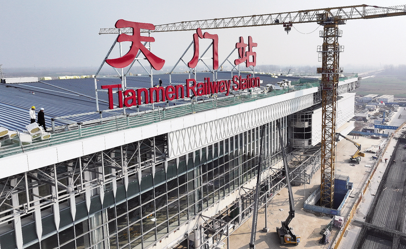 位于杨林街道王施村的天门站,2023年1月1日开工建设,主站房建筑面积约2.2万平方米,为线侧平式站房。站场规模为3台7线,旅客进出站采用上进下出方式,通过候车室进站,穿过架空层出站,能够承载的最大瞬时流量为5000人左右。