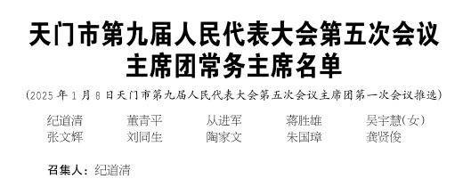 天门市第九届人民代表大会第五次会议主席团常务主席名单