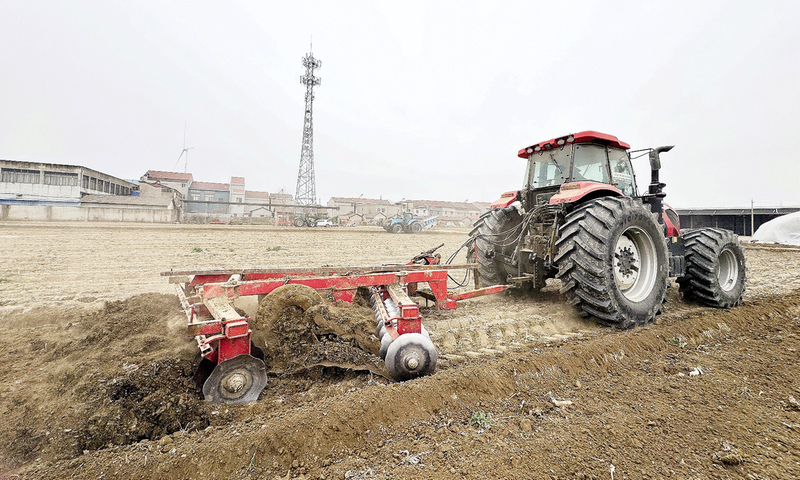 2月 18 日,多宝镇彭场新村村民驾驶农机进行整地作业,为3 月中旬的花生播种做准备。据了解,该镇今年花生种植面积达7万多亩。(融媒体记者王潮摄)