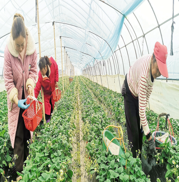 2月22日,游客在黄潭镇徐马湾村大顺草莓园采摘草莓。当前我市大棚草莓陆续进入盛果期,吸引了不少市民、游客前去体验采摘乐趣,乐享“莓”好时光。