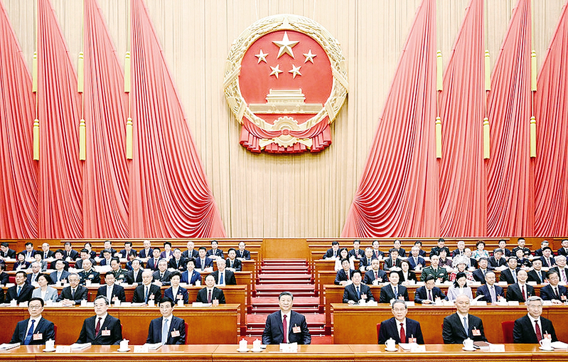 习近平王沪宁蔡奇丁薛祥李希韩正等在主席台就座 李强作政府工作报告 赵乐际主持大会 听取关于代表法修正草案的说明等