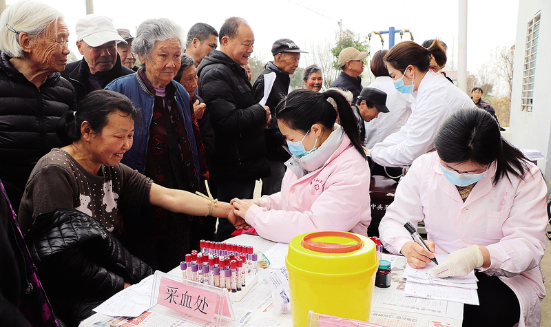 近日,在佛子山镇魏树岭村,该镇卫生院医务人员正在为老年人进行体检。佛子山镇卫生院近期启动老年人免费体检活动,陆续为全镇26个村(社区)65岁以上老年人开展生活方式和健康状况评估,进行体格检查,提供健康管理服务。