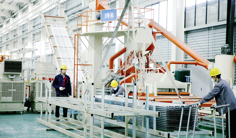 近日,在绿色循环产业园内,湖北立铭铝业科技有限公司生产车间10条铝型材挤压生产线全速运转,经过加热、挤压、氧化等工序,铝棒被加工成光伏支架等精密型材。作为园区再生有色金属产业链的核心企业,该公司年产能达20万吨,预计2025年销售收入将突破10 亿元。(融媒体记者邵书逸摄)