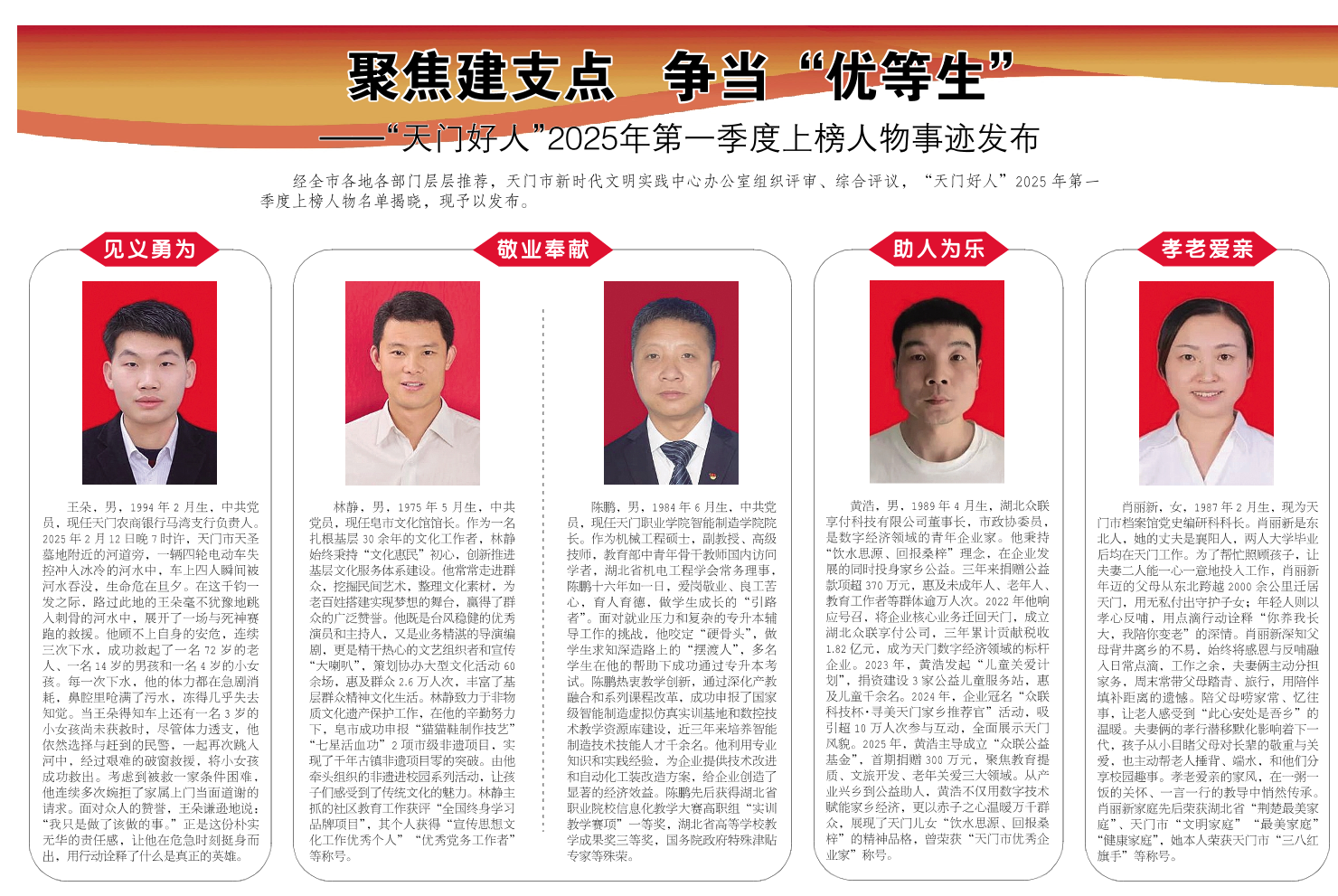 ——“天门好人”年第一季度上榜人物事迹发布