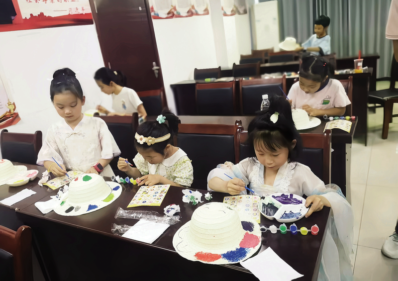 近日,杨林街道前进社区“爱心托管班”开展“草帽DIY” 活动。少年儿童化身小小设计师,专注创作、互相交流,在动手过程中锻炼创造力与协作力,用五颜六色的画笔为草帽注入奇思妙想,每顶草帽绽放着独特童真。(融媒体记者鄢紫摄)