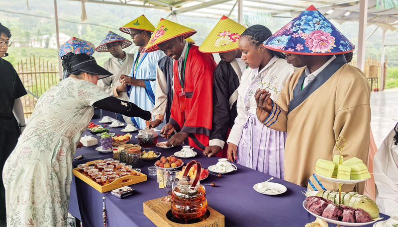 6月4日,由商务部主办、湖北生物科技职业学院承办的援外培训项目“卢旺达综合农业发展研修班”学员来到佛子山镇陆泉生态茶园和天门职业学院陆羽国际茶文化艺术学院、智能制造学院等地考察交流。近年来,不少国际友人来我市研学,考察交流陆羽茶文化。(融媒体记者谢红艳摄)