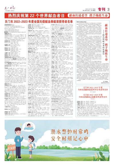 天门市2022-2023年度 全国无偿献血促进奖单位奖获奖名单