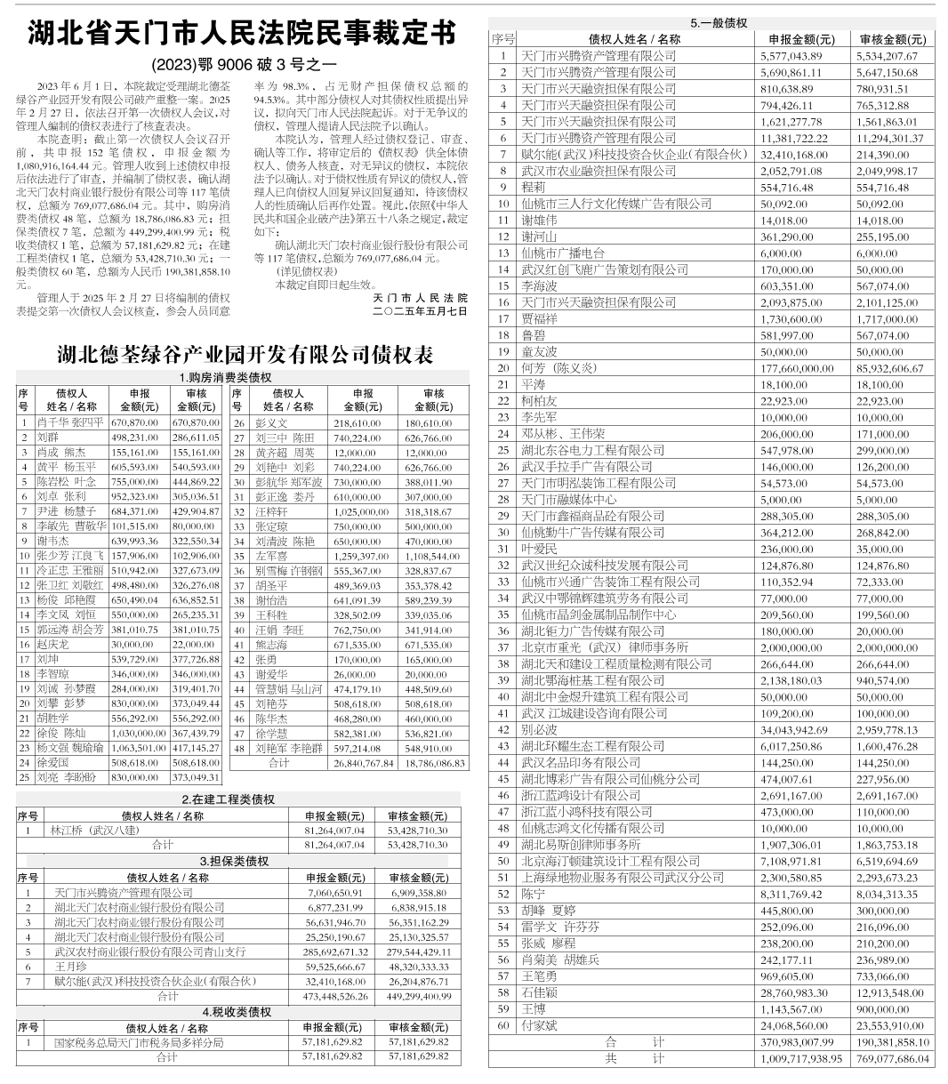 湖北省天门市人民法院民事裁定书