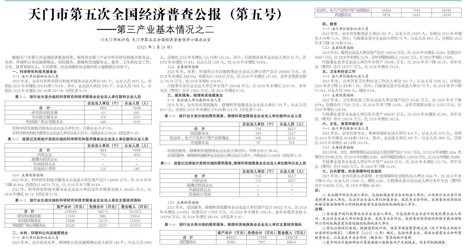 天门市第五次全国经济普查公报(第五号)