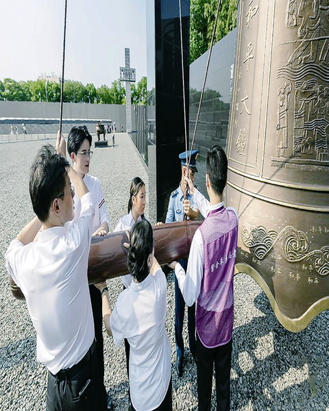 7月7日,各界人士代表在“纪念全民族抗战爆发88周年”仪式现场撞响和平大钟。