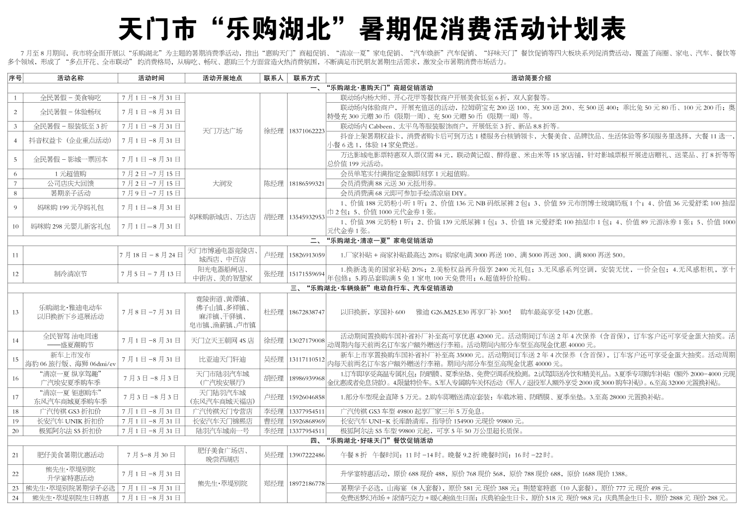 天门市“乐购湖北”暑期促消费活动计划表