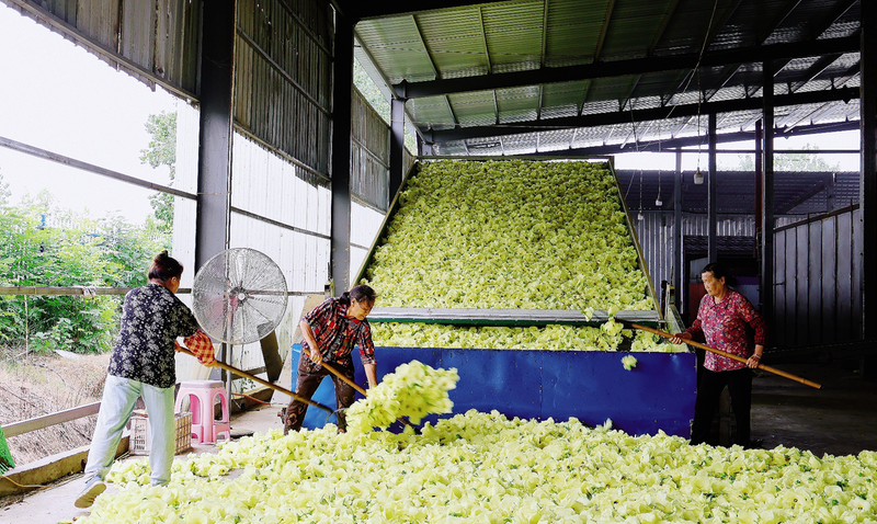 7月22日,诚昌农业发展有限公司工人对采摘的黄蜀葵进行烘烤。该公司由上海仓吉物流有限公司投资建设,是马湾镇“资智回乡”招商引资项目,主要从事黄蜀葵等中药材的种植、收购、加工和销售,目前种植中药材1500亩,带动当地400余户村民增收致富。(融媒体记者吴一篇摄)