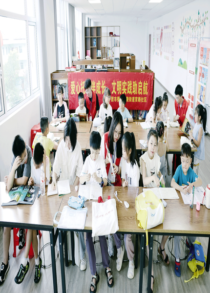 近日,竟陵街道官路社区暑假爱心托管班内,大学生志愿者正在辅导孩子们写作业。为化解少年儿童暑假“看护难”问题,团市委开办67个暑假爱心托管班,招募200多名大学生志愿者,为全市2000余名少年儿童提供课业辅导、兴趣培养、素质拓展、安全自护、爱心陪伴等公益服务。